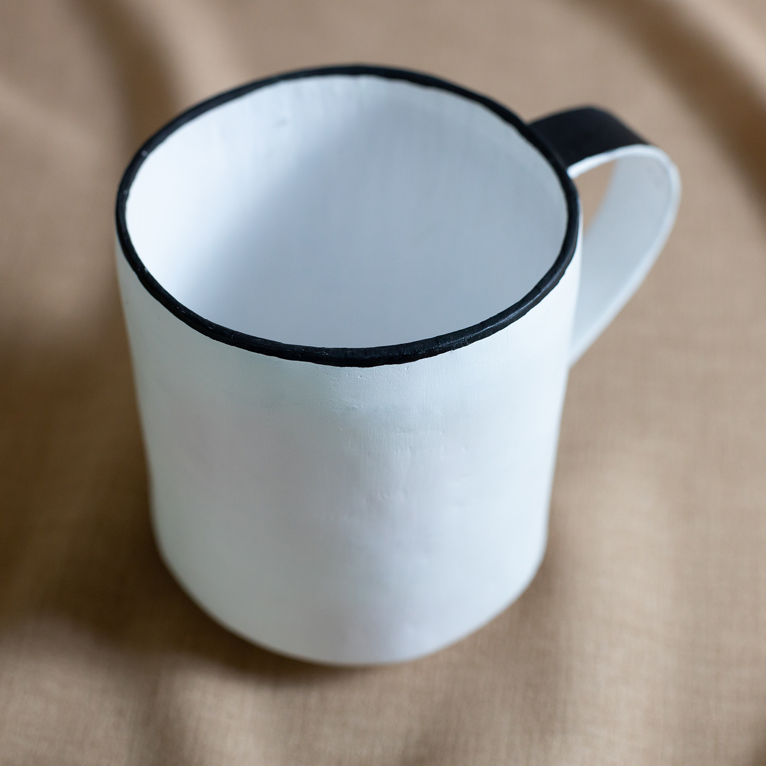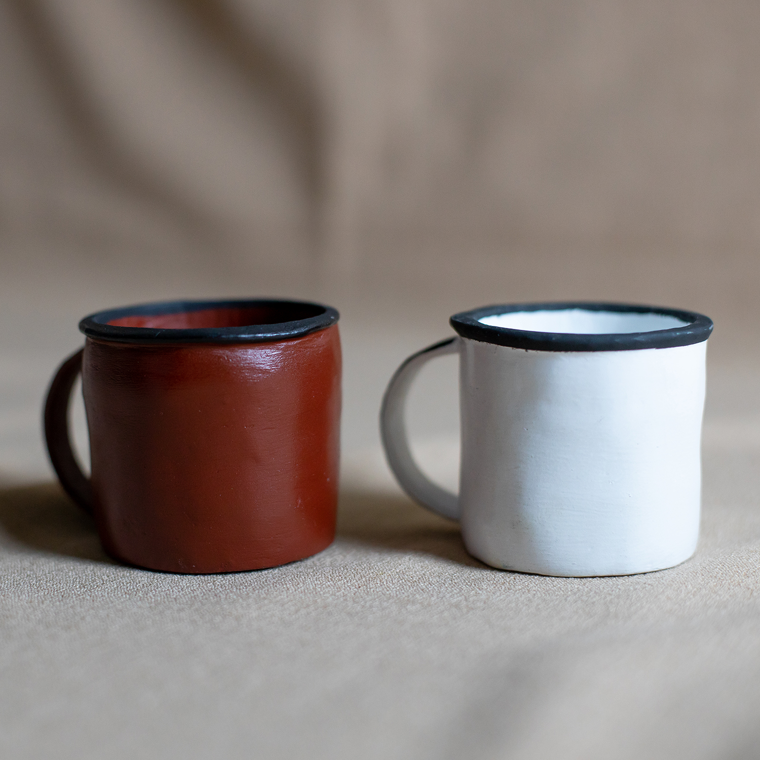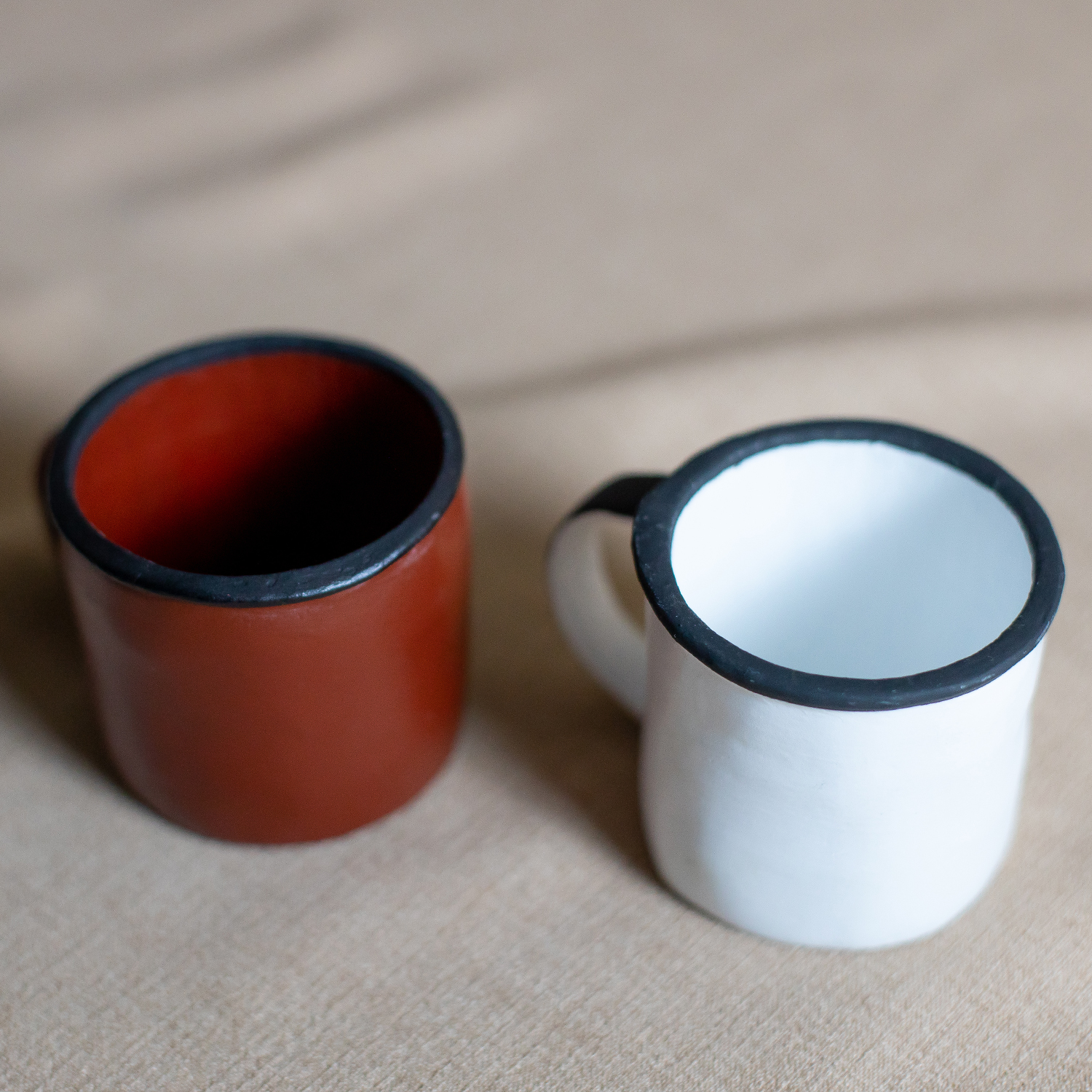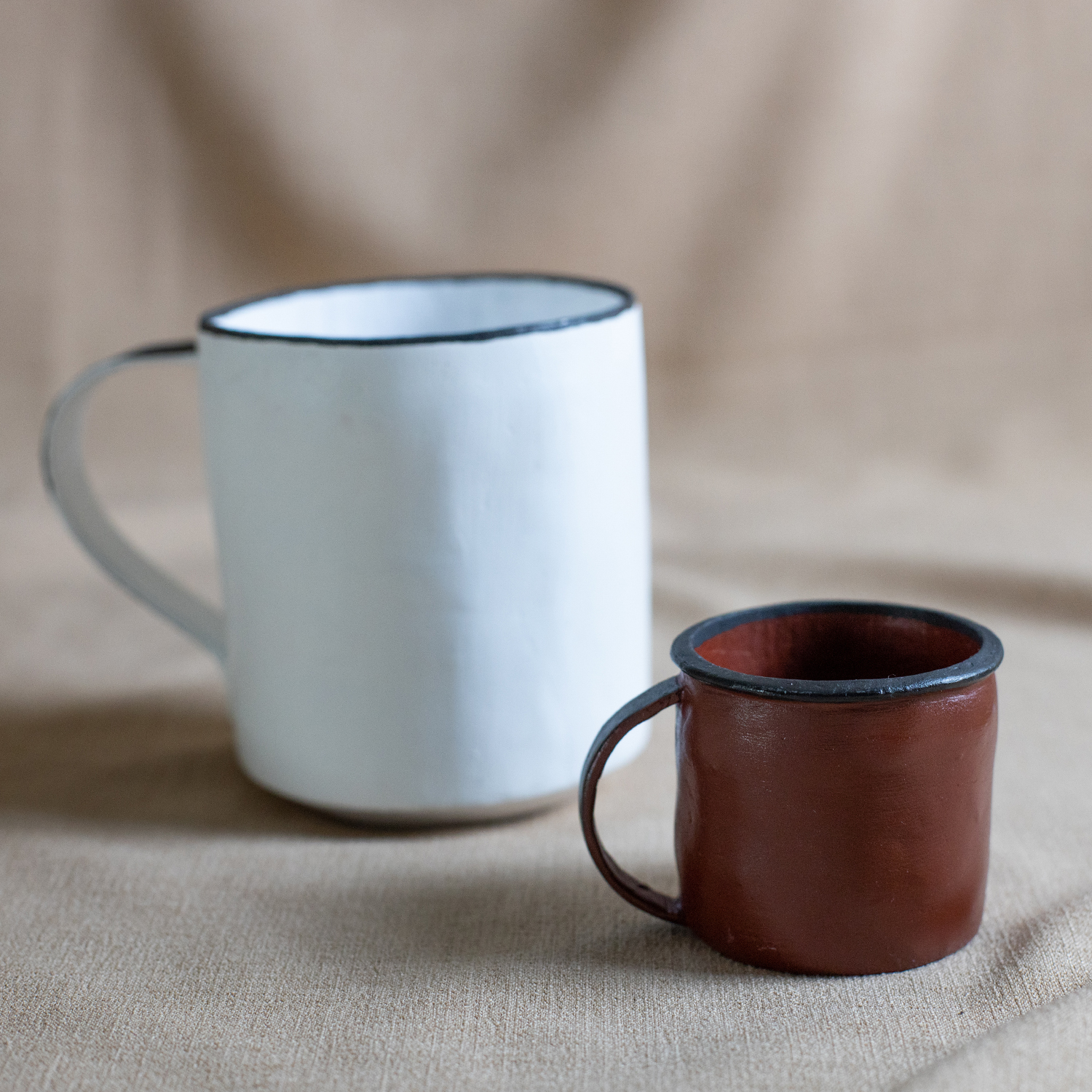 As canecas decorativas foram inspiradas nos tradicionais utensílios de ágata, tão presentes nas casas mineiras. No Minha Casa em Mim, eles foram recriados pelo consultor Babá Santana, que usou a técnica de papietagem. Apenas com papel e cola, os artesãos do grupo Feira Marte moldam os objetos primorosamente, criando uma cena poética e inusitada. Deve-se utilizar um pano seco para limpeza da peça.