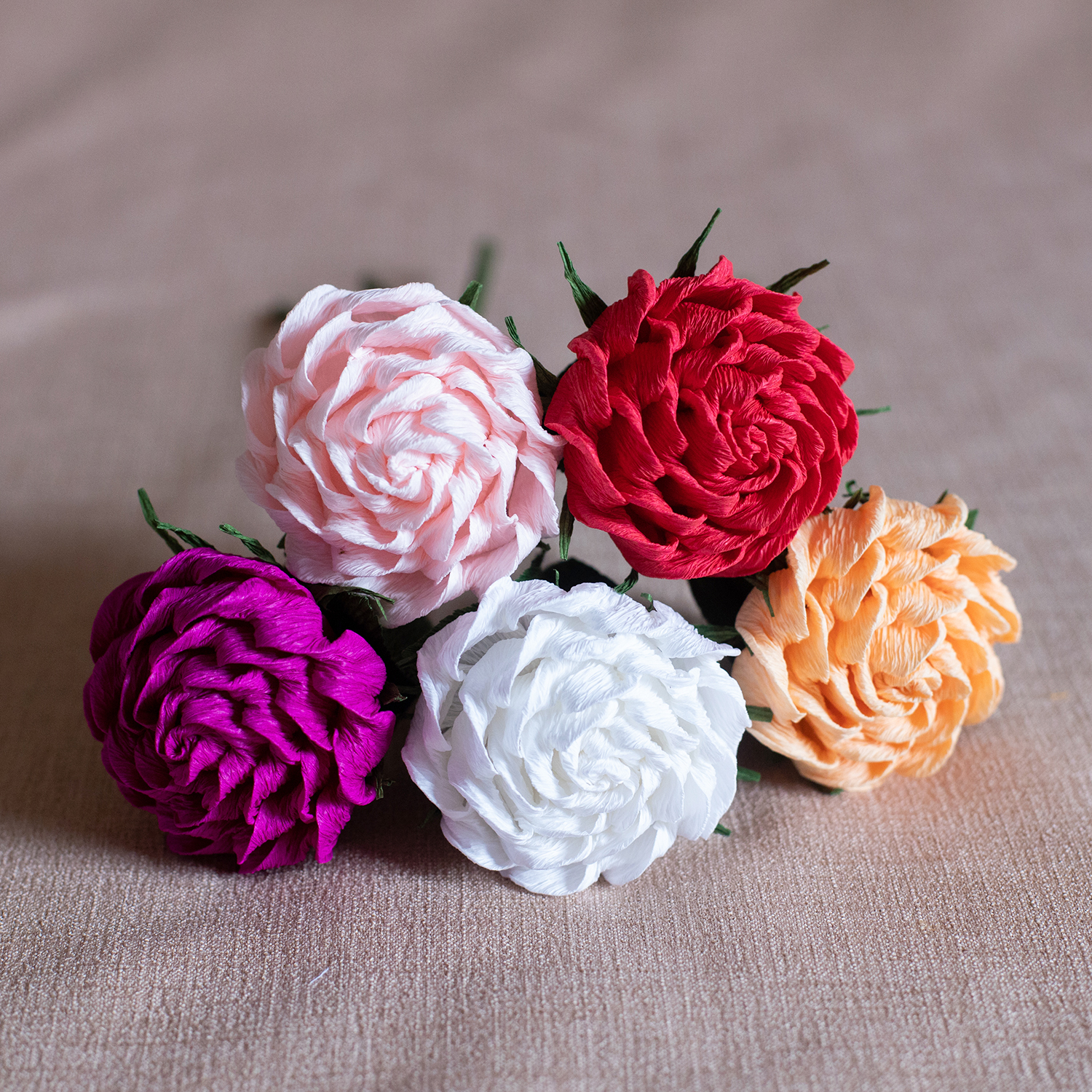 Nosso jardim se enfeita com as flores criadas pelo grupo da Feira Marte, com variadas cores e tamanhos. As rosas de papel traduzem em beleza a simplicidade do material, criando um belo bouquet para encantar sua casa.