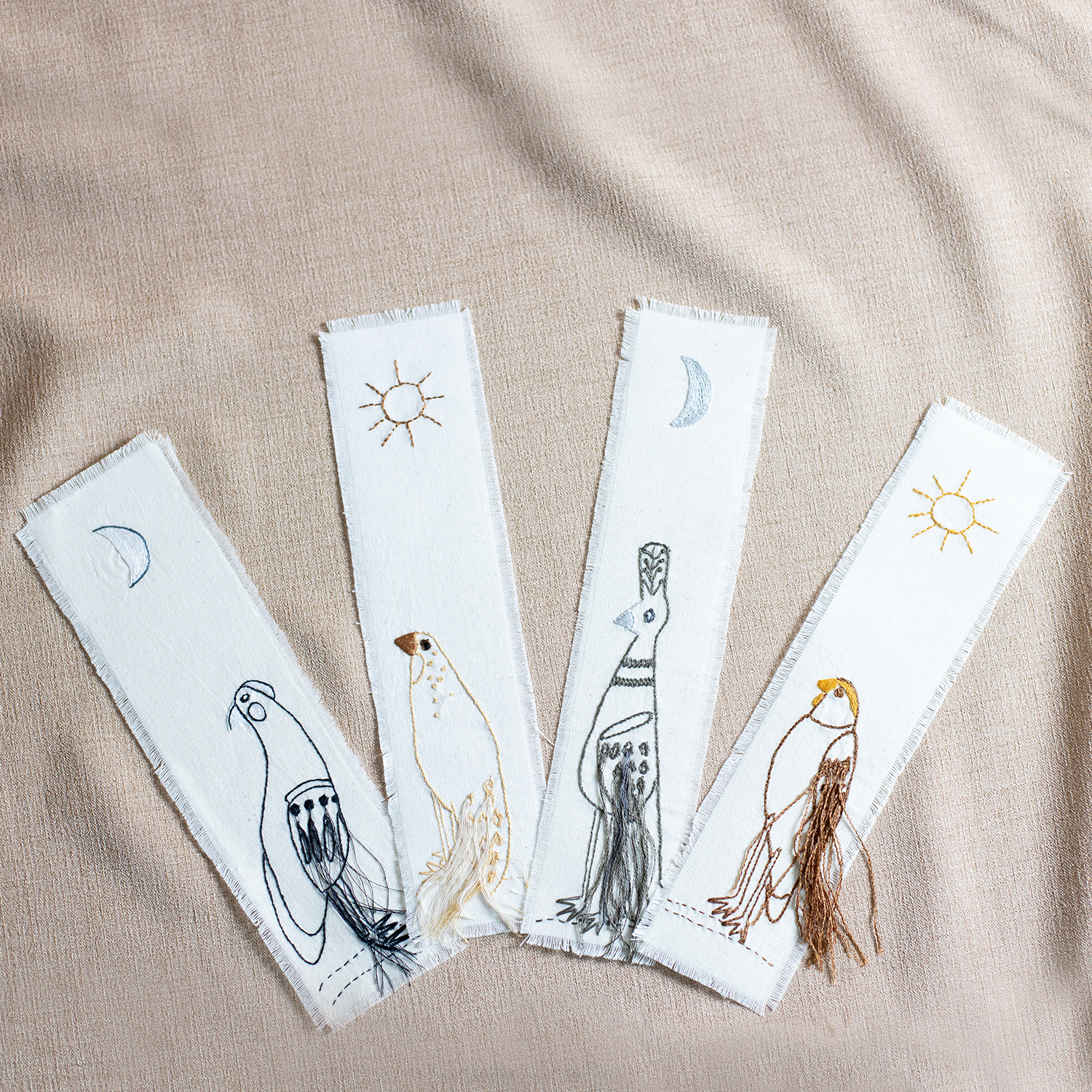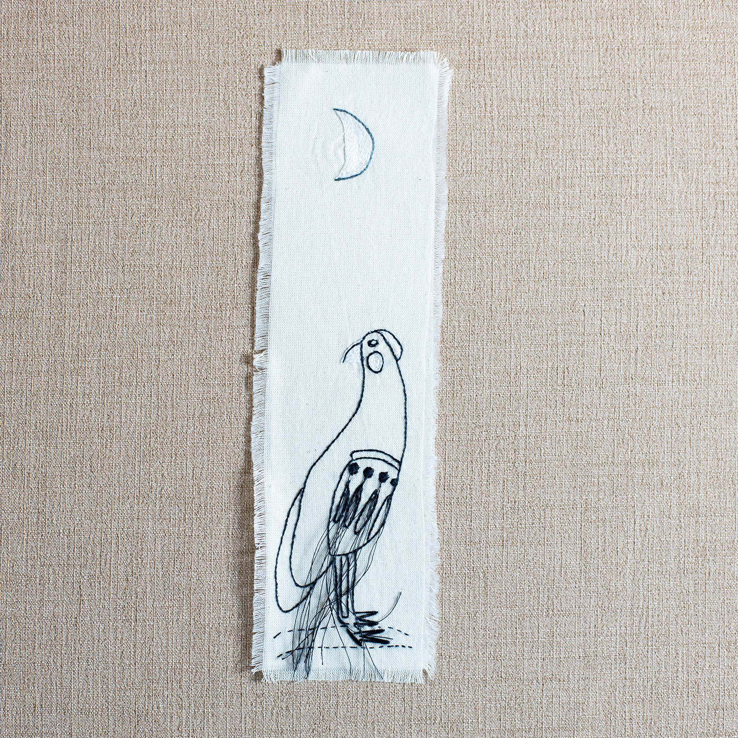 Os desenhos dos pássaros criados por Ronaldo Fraga foram aplicados ao tecido e bordados à mão pelas artesãs do grupo Movimento Renovador, criando uma cena poética e delicada que te ajudará a retomar suas leituras com estilo.