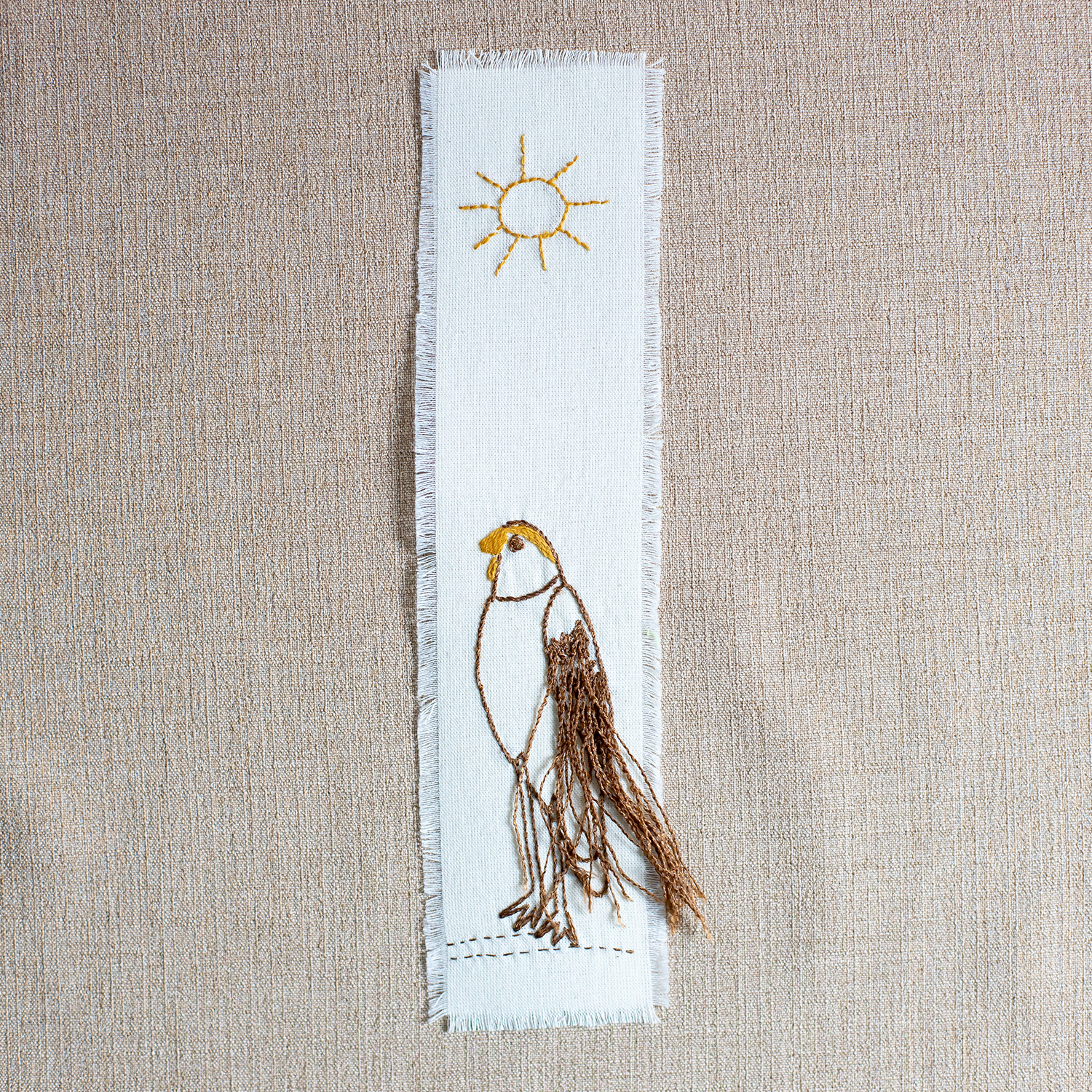 Pano de sacaria com silk feito à mão e bordado livre