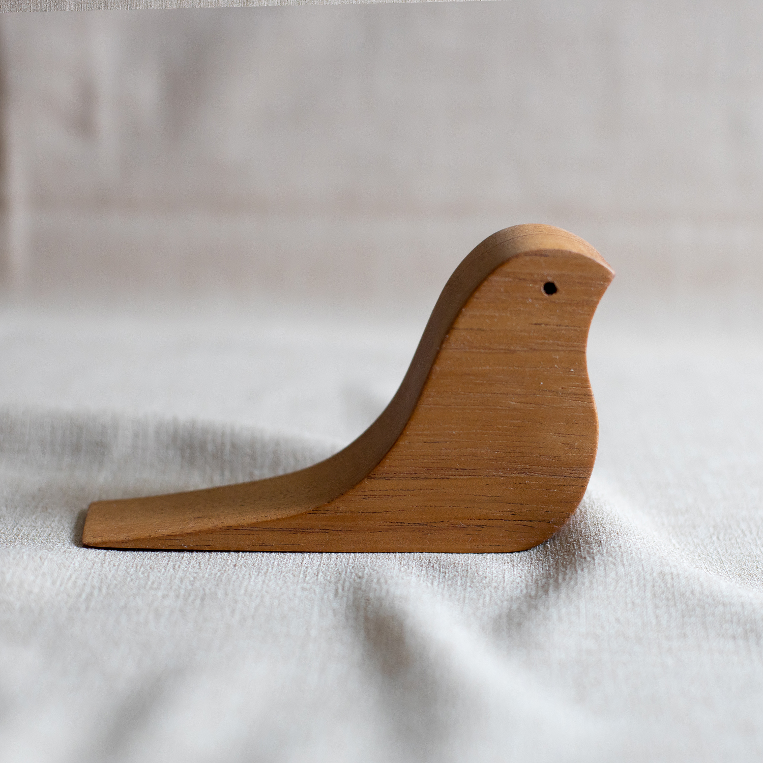 O trava porta passarinho é útil e charmoso. Permite que as portas fiquem abertas sem bater, auxiliando na ventilação dos ambientes. Foi desenvolvido pela artesã Gisele Daman. Tamanho: 16x9cm Material: cedro